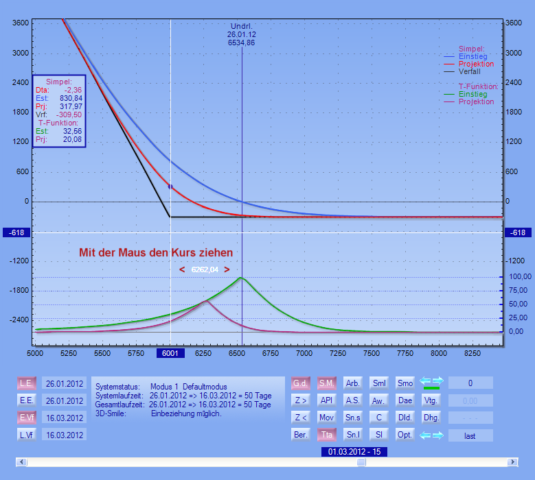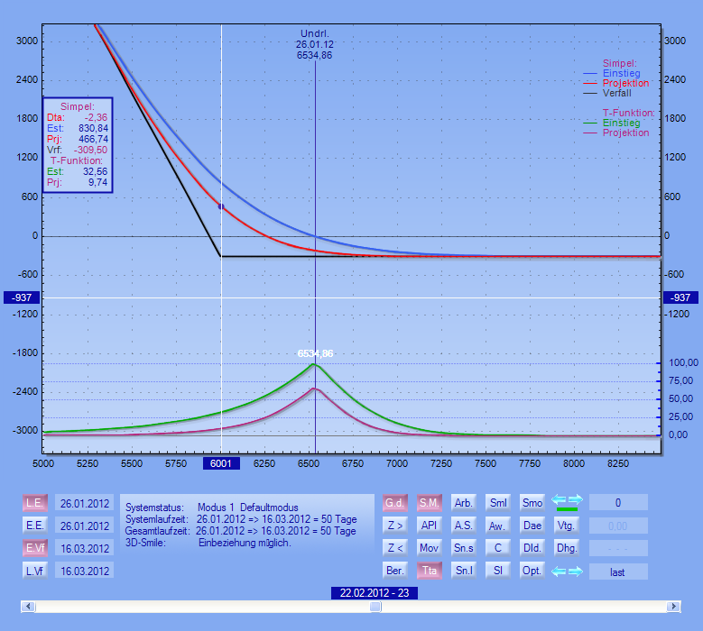 der synthetischen Optionen entsprechen immer der Systemlaufzeit. In diesem Fall sind es 50 Tage und zwar vom 26.01.2012 bis zum 16.03.2012. Für die