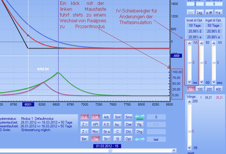 Underlyingkurs, Vola und Restlaufzeit sichtbar zu machen. Für den Aufruf der Theta-Simulation wird der gleiche Button verwendet, wie die Verteilungsfunktion,