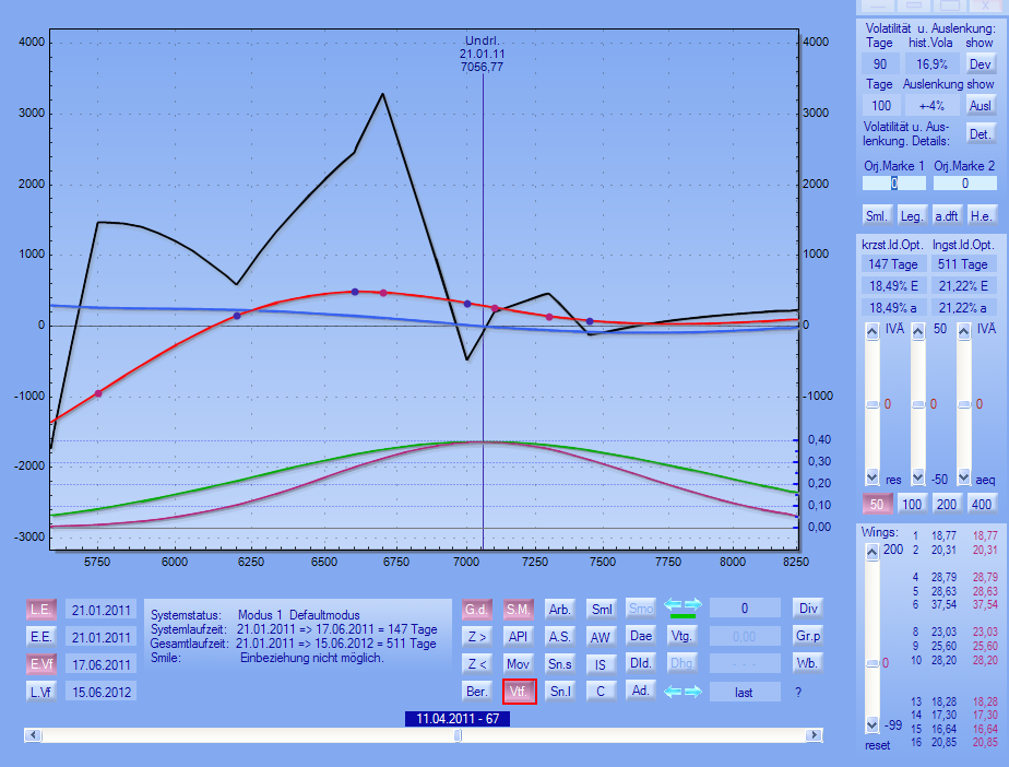 kürzest laufenden Option ATM am Einstiegstag errechnet. Die violette